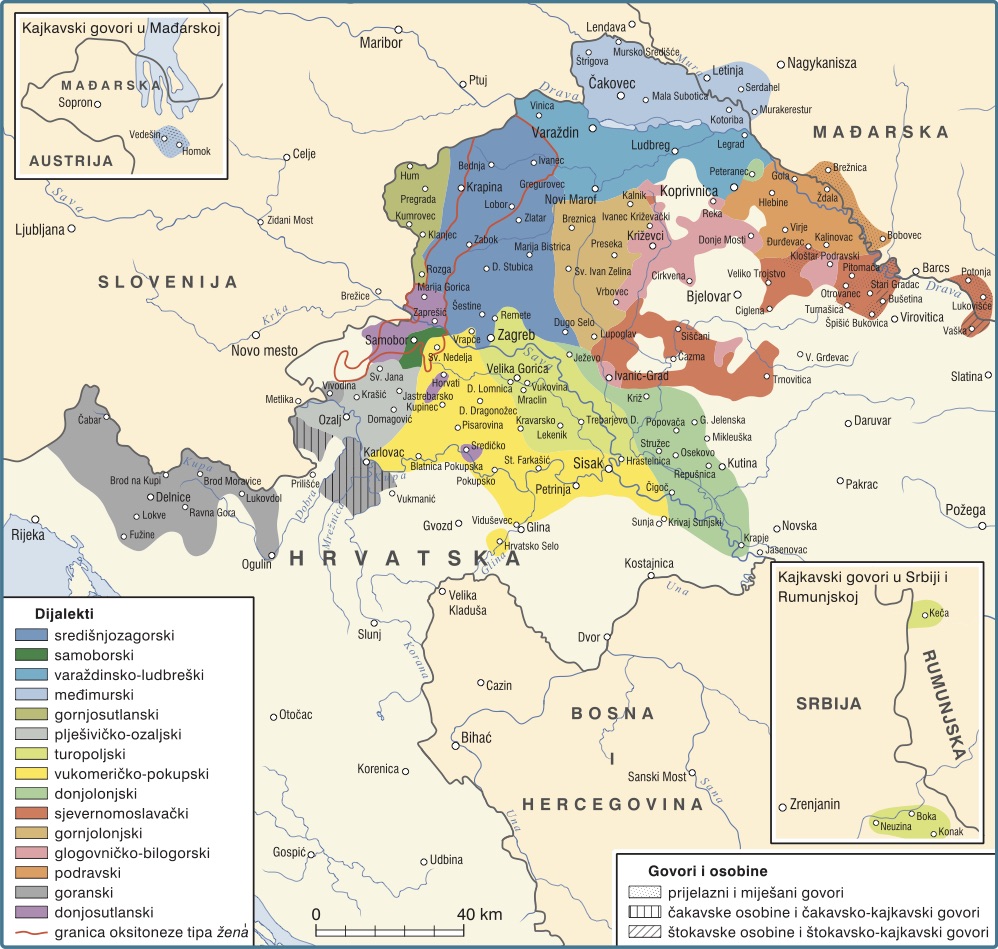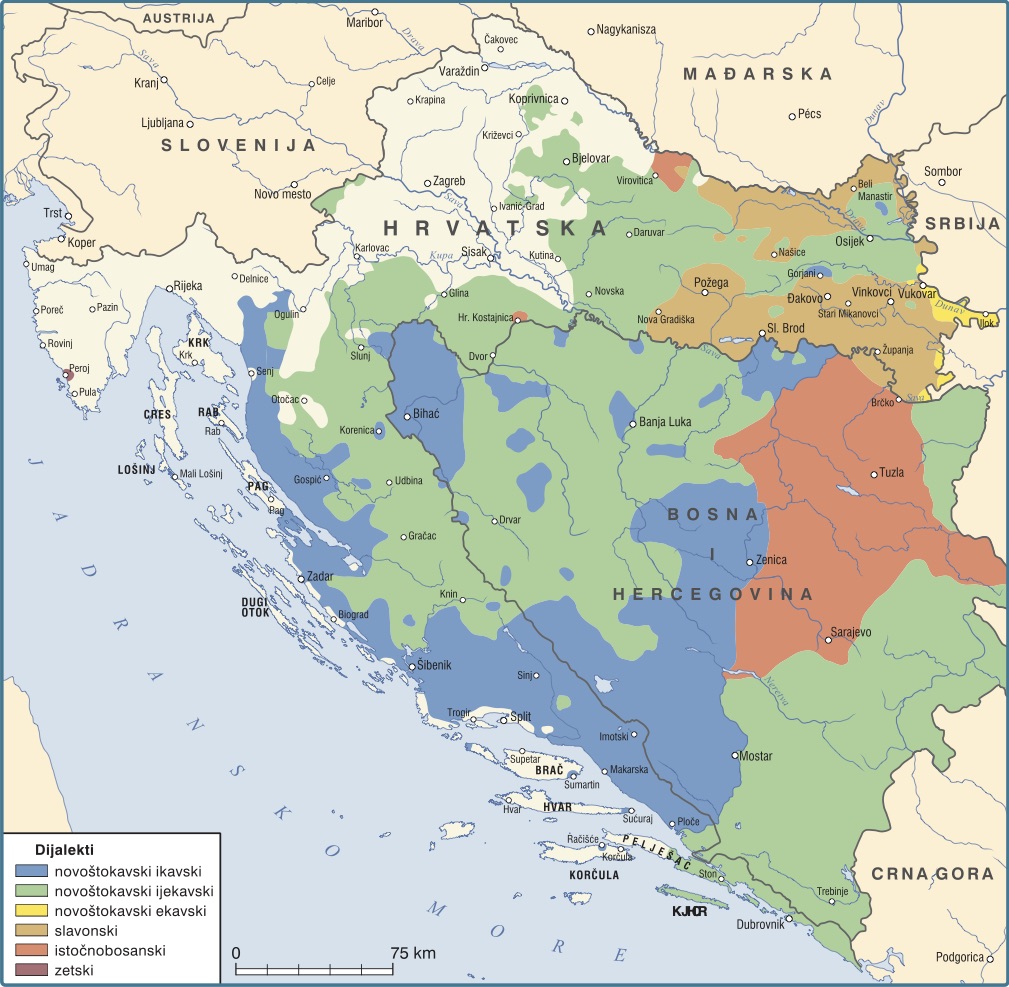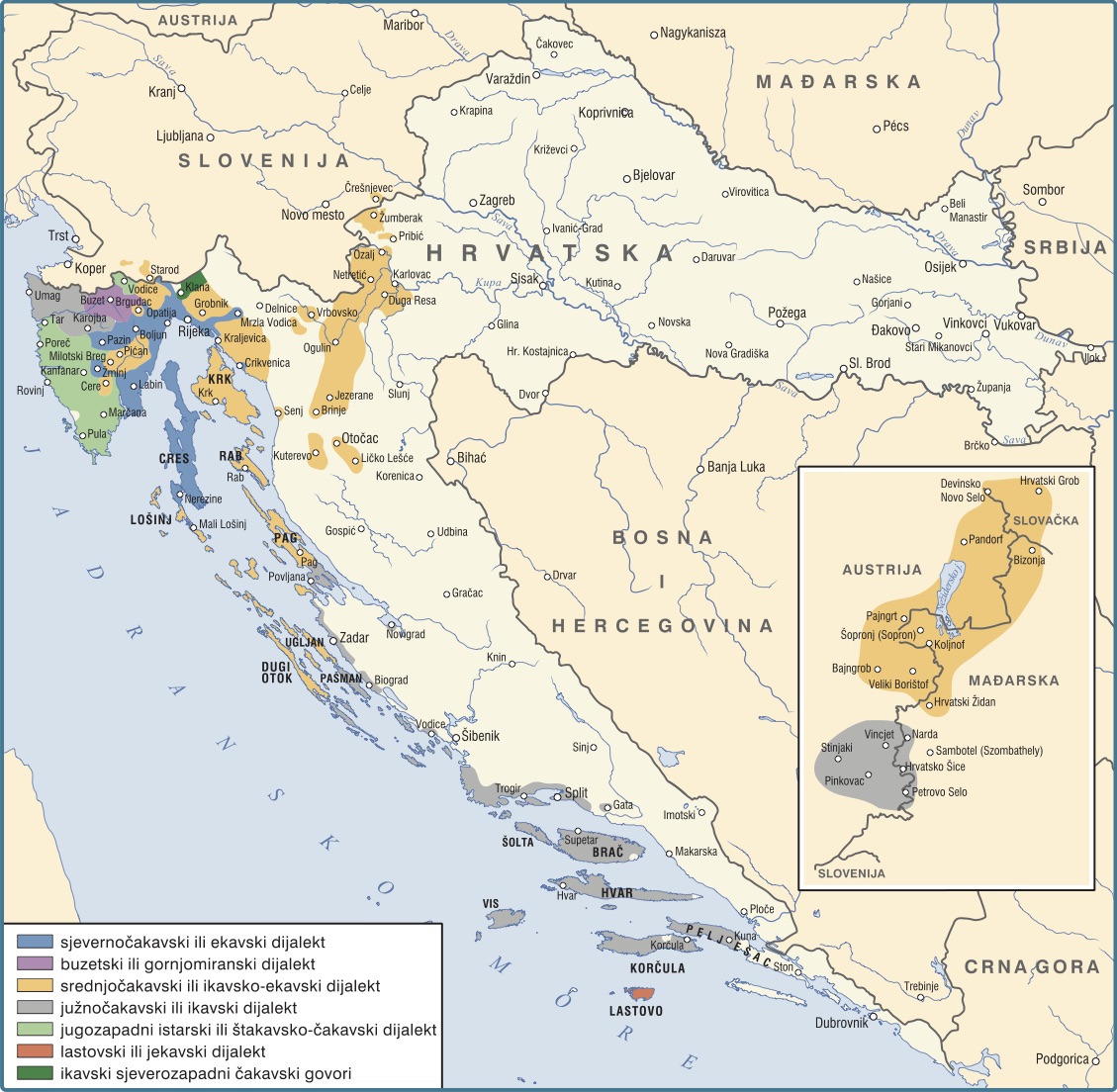 Karta štokavskoga narječja i štokavskih dijalekata u Hrvatskoj i Bosni i Hercegovini